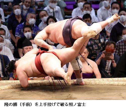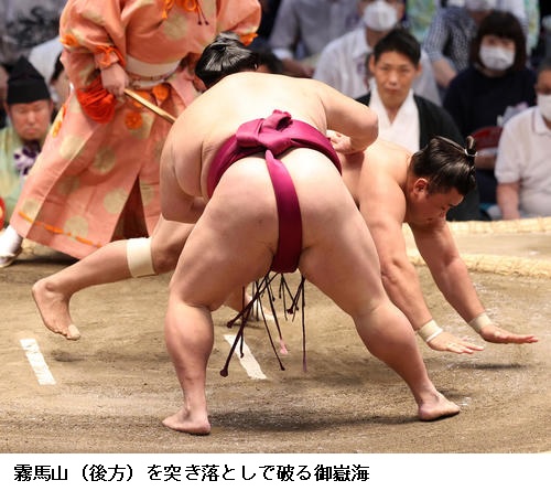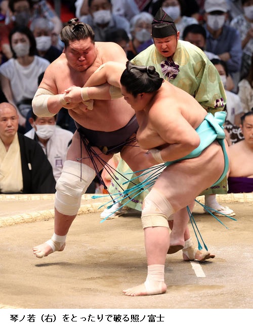 ▽霧馬山に横綱 照ノ富士は、照ノ富士が寄り切りで勝ちました。
