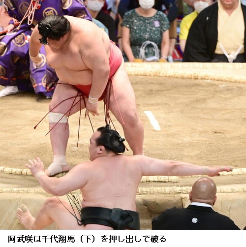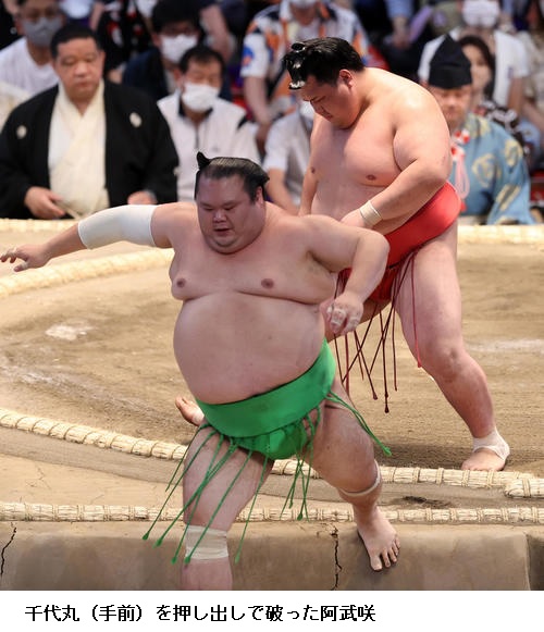 ▽千代翔馬に阿武咲は、阿武咲が押し出し。