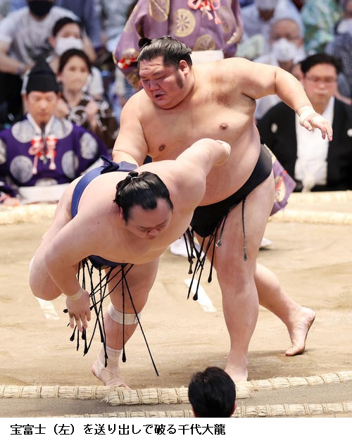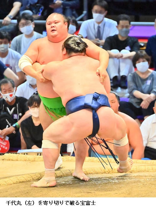 ▽千代翔馬に宝富士は、千代翔馬が寄り切り。