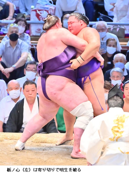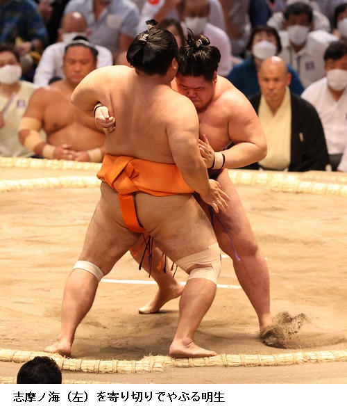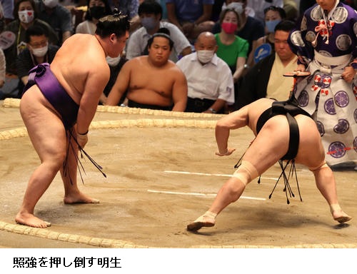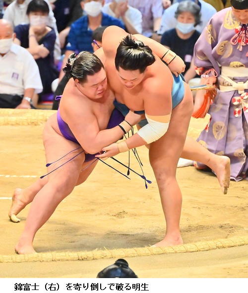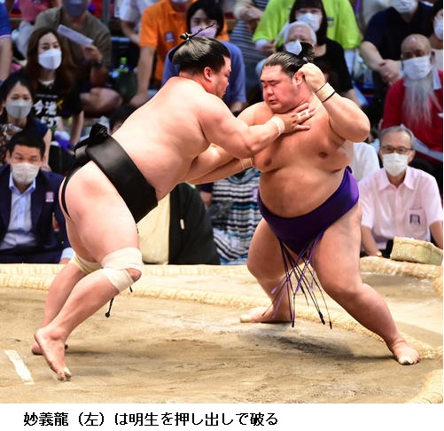 ▽妙義龍に明生は妙義龍が押し出し。