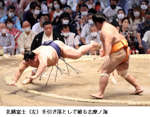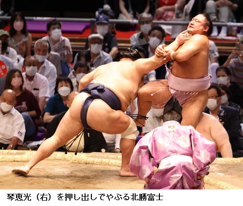 〇北勝富士 (対戦相手の翔猿を)つかまえるというのは考えてなかったんですけど、とっさにつかまえた。(先場所)土俵際でうっちゃりで同体になってしまったんで、今回はしっかり決めにいきました。最初の計画とは違ったけど、勝てて良かったです。