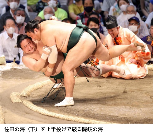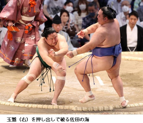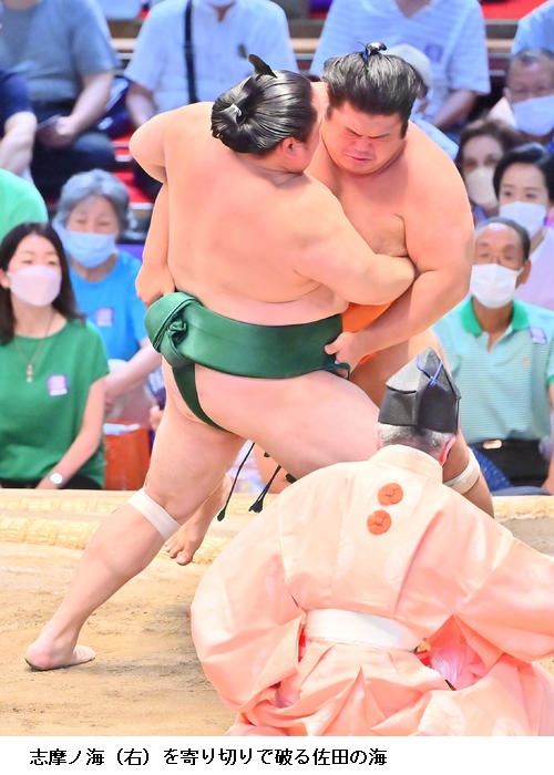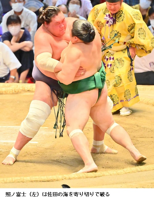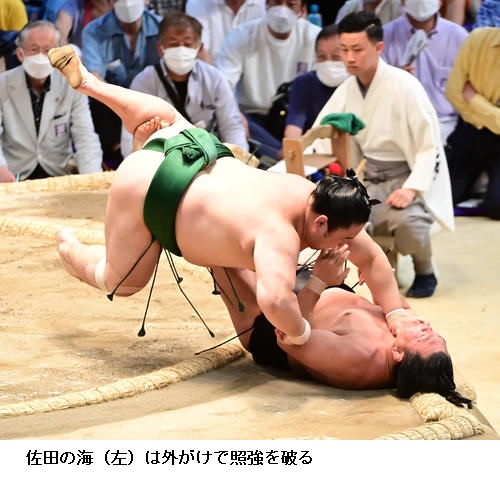 ☆佐田の海 (照強は)3日連続で足取りで勝ってるんで。半分やってくると頭に入れておきました。途中つかまってしまったが、最後は勝ててよかった。取りづらさはあるけど、だれが相手でも勝っていかないといけないので。
