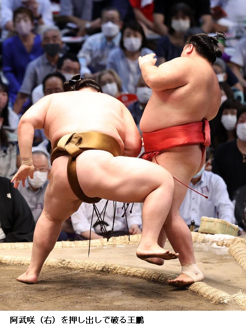▽照強に王鵬は王鵬が上手出し投げで勝ち越しました。照強は負け越しです。
