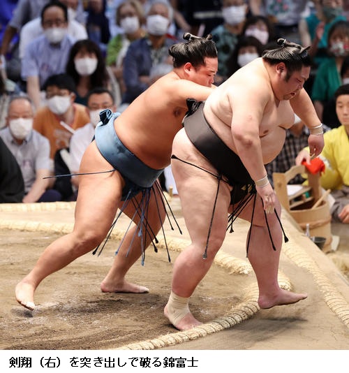★錦富士 (前まわし狙うも)右がさがりですっぽ抜けた。足が出ていなかったんで。(大関経験者との対戦で違いは)特にないです。(勝ち越しても)今日もしっかり勝とうと気持ちを切り替えていった。
