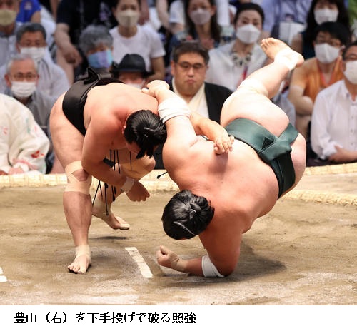 大相撲 名古屋場所11日目 横綱 照ノ富士 2敗守る ―― 大相撲名古屋場所11日目。横綱 照ノ富士は小結 豊昇龍を破って、優勝争いトップに並ぶ2敗を守りました。