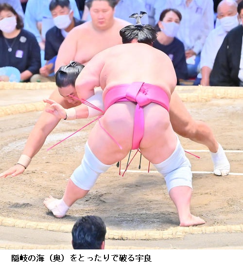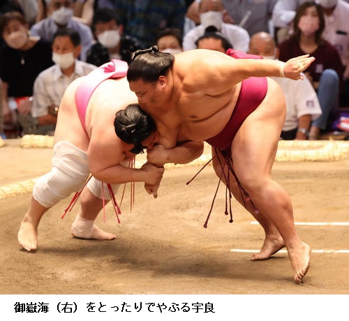 宇良は、不戦勝で6勝目を挙げ「支度部屋での準備は毎日の繰り返しなので崩さず、取組がない分、ふだんよりも体を動かした。何としても最後まで頑張りたい」と淡々としていました。