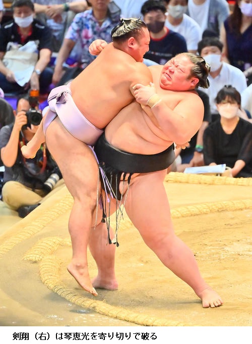 ★剣翔 立ち合いはうまくいったんですけど、休まず出られる後手になったのでそれが敗因だと思います。(土俵際の微妙な勝負は)物言いつきましたけど、負けてると思ったので。思い切りやったので悔いないです。