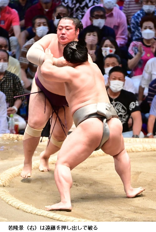 ×若隆景 つかまってしまったんで、明日からまた、切り替えてやりたいです。(場所前は)しっかり稽古ができる環境だったんで、良かったと思います。