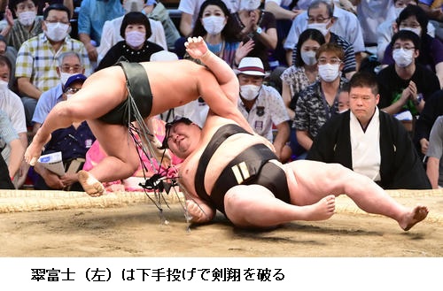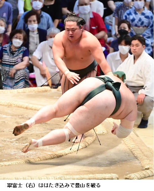 ▽豊山に翠富士は翠富士がはたき込みで勝ち越しました。