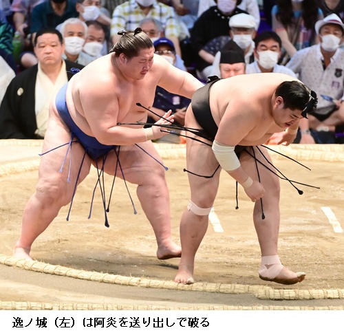 〇逸ノ城 (立ち合いで張り差しを見せたことに)差すためにはそれしかないと思っている。苦手な相手にはそういうふうにやっていかないと押されちゃうので。昨日のような形になったんで、(今日の相撲も)良かったと思います。迷いがなく、昨日と今日のような相撲をしたいです。
