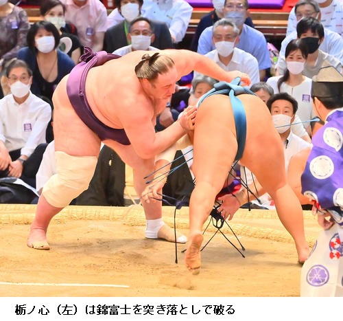 ▽錦富士に栃ノ心は、栃ノ心が突き落とし。