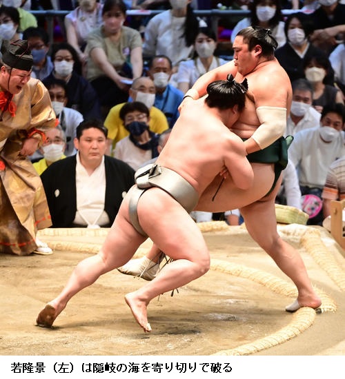 ▽隠岐の海に若隆景は、若隆景が寄り切り。