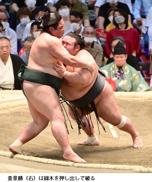 ▽錦木に大関 貴景勝は、貴景勝が押し出しで3敗を守りました。錦木は4敗に後退です。