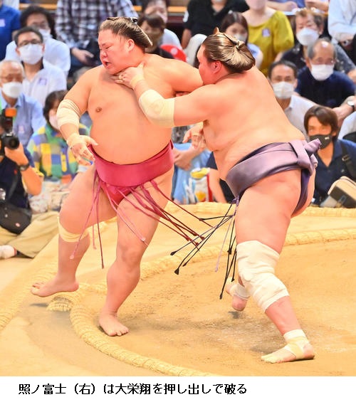 ▽大栄翔に横綱 照ノ富士は、照ノ富士が押し出しで2敗を守りました。