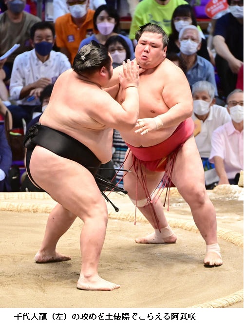 ▽千代大龍に阿武咲は阿武咲が寄り切りで勝ち越し。
