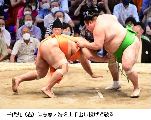 ▽志摩ノ海に千代丸は千代丸が上手出し投げ。