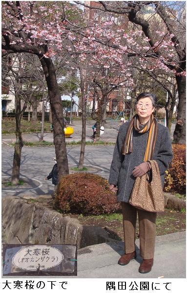 朝食後、5月の九州旅行のスケジュールを相談にJTB(Japan Tourist Bureau)まで出かけたが、水曜日は定休日ということ。明日また来ることにして、隅田公園を抜けて帰宅した。花川戸辺りでは早咲きの「おおかんざくら」が開いていた。