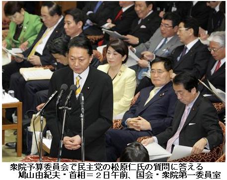 「はい。この永住外国人の地方参政権。選挙権の件でありますが、その件に関して若干お話をしました。私の方から、遅れていますと。しかし、これは今、特に与党の中で必ずしも意見がまとまっていないんですという話をしました。そこで、与党の中でしっかりとまずすり合わせをすることが大事だなと。時間がかかってもこれは特に自分としては大事なテーマだと思うというふうに幹事長も申してですね、それならばという、それならばというか、私どもとしても今、議論をしている最中なんですけれども、政府として今、意見を集約をする段階で、必ずしも与党の中でのすり合わせができていないところをですね、これからしっかりやっていこうではないかということになりました」 (産経ニュース、2010.3.2 22:31)