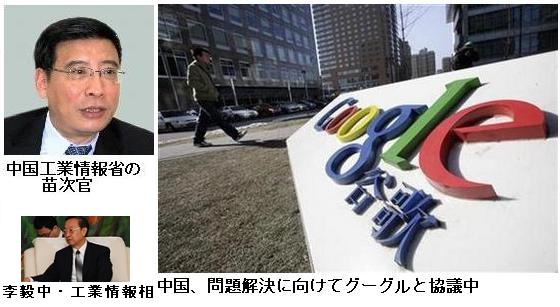 中国、問題解決に向けてグーグルと協議中 ―― 中国の李毅中・工業情報相は5日、インターネット検索大手の米グーグル(GOOG.O)が中国からのハッカー攻撃や検閲をめぐる懸念を理由に同国からの撤退も辞さない構えをみせていることについて、問題解決に向けてグーグルと協議している、と明らかにした。/中国全国人民代表大会(全人代、国会に相当)の合間に述べた。 (IBTimes、2010年03月05日 12:43更新)