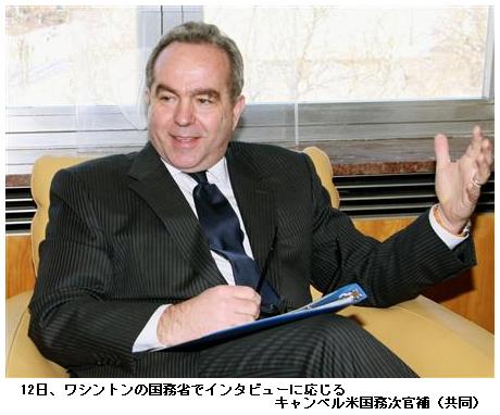 「オバマ・小沢会談実現に全力」 米国務次官補が表明 ―― 【ワシントン共同】キャンベル米国務次官補(東アジア・太平洋担当)は12日、ワシントンの国務省で共同通信とのインタビューに応じ、民主党の小沢一郎幹事長が訪米の条件としているオバマ大統領との会談に関し「米政府の最も高いレベルと対話できるよう、あらゆる努力を惜しまない」と述べ、実現に全力を尽くす考えを表明した。/米軍普天間飛行場(沖縄県宜野湾市)移設問題では、キャンプ・シュワブ沿岸部(沖縄県名護市)に移設する現行計画が最善策と強調したが、日本側提案にも「耳を傾ける」と柔軟姿勢も示した。/与党幹事長が訪米して米大統領との会談が実現すれば極めて異例。対日政策を担うキャンベル氏が、鳩山政権の実力者である小沢氏を重視する姿勢が鮮明になった。キャンベル氏は鳩山政権が普天間問題の決着期限とする5月末の前に当たる、4月下旬からの大型連休中の訪米を求めている。/キャンベル氏は小沢氏を「日本の政治家で最も重要な一人。敬意を表するため(訪米実現に)全力を尽くす」と強調。小沢氏ら民主党議員団の訪米を「大歓迎する」と述べ、近くワシントンへの公式な招待状を送付する考えを示した。 2010/02/13 11:27 【共同通信】