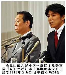 選挙:参院選・島根選挙区 小沢氏「青木幹雄氏は役割を終えた」―― 対抗馬の擁立会見/民主党の小沢一郎幹事長は21日、松江市内で参院島根選挙区の自民党現職、青木幹雄前参院議員会長の対抗馬となる元民放アナウンサーの擁立会見を開いた。小沢氏は自民党時代に同じ旧竹下派に身を置き、「参院のドン」と言われた青木氏について「立派な方だが時代的役割は終えたと認識している」と述べ、仇敵(きゅうてき)との対決への決意を示した。/小沢氏は「青木氏は特に参院で大きな力を持ち、自民党体制、旧体制を代表する人」と断じたうえで、「最重点選挙区とする」と述べた。/小沢氏は92年の旧竹下派分裂の際、青木氏の工作で参院側の参加者数を抑えられ、結果的に93年の自民党離党につながった因縁がある。(毎日新聞 2010年2月22日 東京朝刊)
