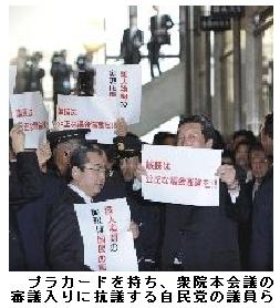 自民、衆院は審議拒否でも参院では出席 不満公然化 ―― 衆院で審議拒否を続ける自民党が24日、午後からの参院での審議に応じ、衆参で対応が割れた。参院側では審議拒否方針を決めた執行部への不満が公然化。衆院で自民党欠席のまま新年度予算案や法案が通過した場合でも、参院では審議に応じるべきだとの主張が強まっている。/衆院では24日午前、子ども手当法案が審議入りした厚生労働など7委員会が自民党だけ欠席で開会した。予算委では採決の前提となる中央公聴会が開かれた。一方、参院では午後から政府開発援助特別委員会と少子高齢化・共生社会など三つの調査会で参考人質疑があり、自民党も出席した。/自民党執行部は「政治とカネ」の問題で、民主党が小沢一郎幹事長の証人喚問などに応じなければ審議拒否を続けるとしているが、同党は「ゼロ回答」。自民党の参院側からは「審議拒否は与党には蛙(かえる)の面に小便で、あまり値打ちがない」(谷川秀善・参院幹事長)として、参院独自で今後の予算案などの審議にも応じる動きが出ている。/民主党は24日の衆院議院運営委員会理事会で、高校無償化法案を25日の本会議で審議入りさせることを決める方針。これに対し、自民、公明両党は、小沢氏の元秘書である石川知裕衆院議員の辞職勧告決議案を採決すべきだなどとして反対している。 (asahi.com、2010年2月24日15時2分)