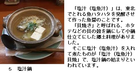 5 塩汁鍋 →しょっつるなべ 6 蒲鉾 →かまぼこ