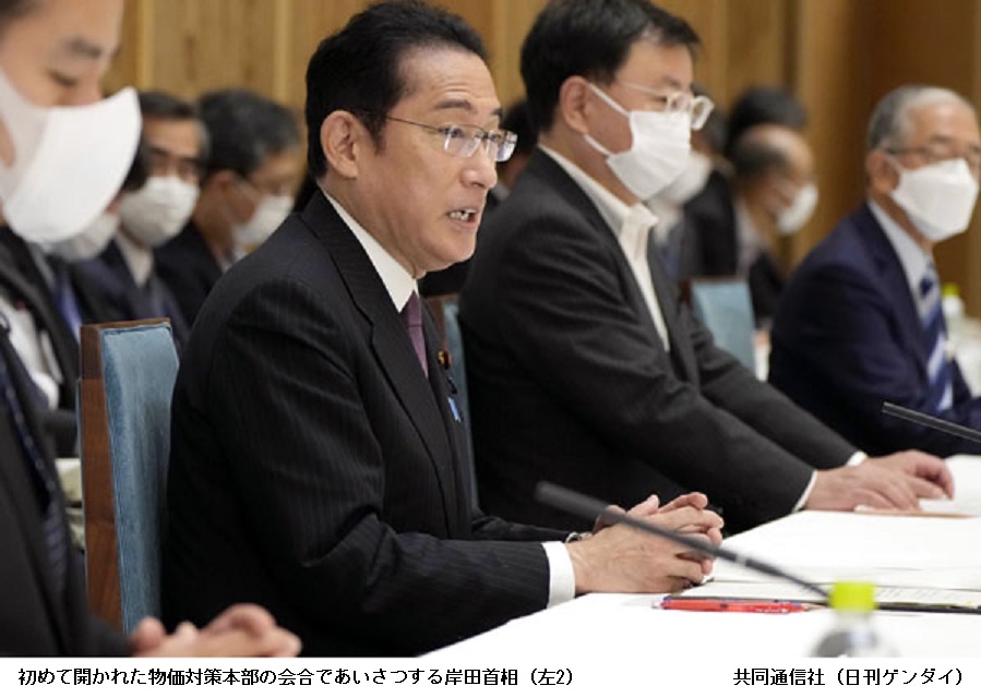 21日午前、初めて開かれた物価対策本部で岸田首相は「生活に直結する物価動向を注視し、きめ細かく切れ目なく対応していく」と意気込んだ。しかし、示された対策はどれも、有権者ウケしなさそうなショボいものだ。