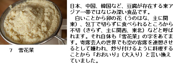 7 雪花菜 →豆乳の搾りかす。「きらず」とも