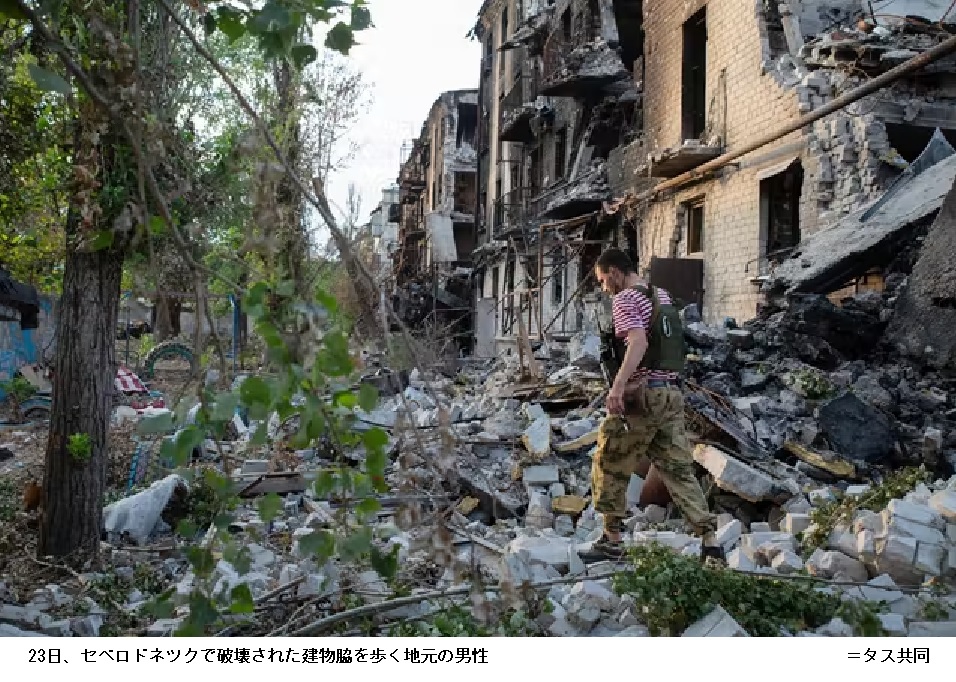 ウクライナ部隊に東部要衝から撤退命令 地元知事表明 ―― ウクライナ東部ルガンスク州のガイダイ知事は24日、ロシア軍が大半を制圧した要衝セベロドネツクに残る部隊に対し、撤退命令が下ったとSNS(交流サイト)で明らかにした。セベロドネツクは同州でのウクライナ側最後の拠点とされ、同国軍は化学工場に立てこもって抗戦していた。