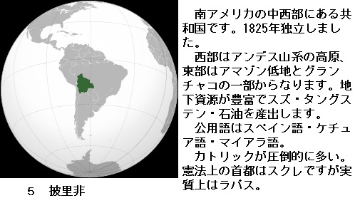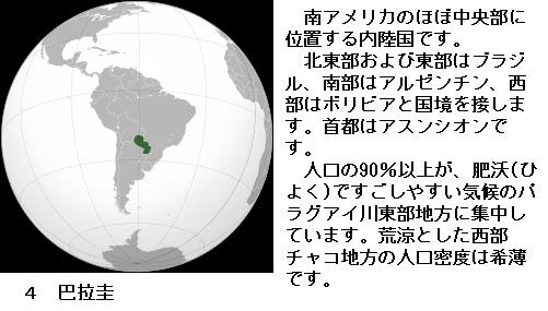 3 宇柳具 →ウルグアイ 4 巴拉圭 →パラガイ