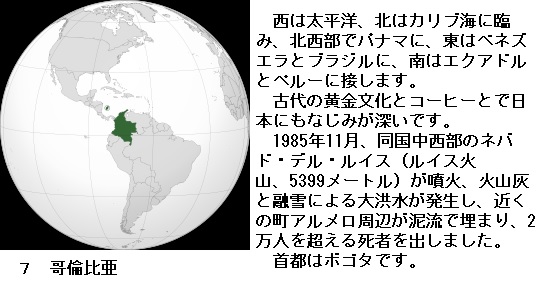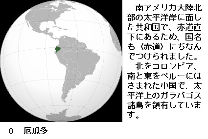 7 哥倫比亜 →コロンビア 8 厄瓜多 →エクアドル