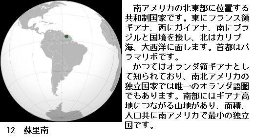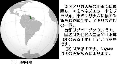前回「南アメリカの国名に関する難読漢字」の解答です。