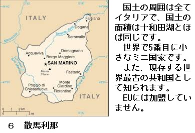 5 和地関 →バチカン 6 散馬利那 →サンマリノ