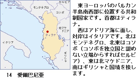 13 斯洛文尼亞→スロベニア 14 愛爾巴尼亜→アルバニア