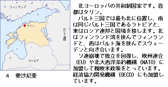4 愛沙尼亜 →ロシア連邦との間に国境問題が存在