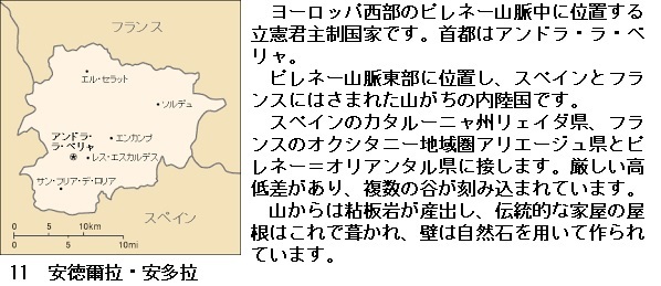 11 安徳爾拉・安多拉 →石川県金沢市と同じくらいの面積の小さな国