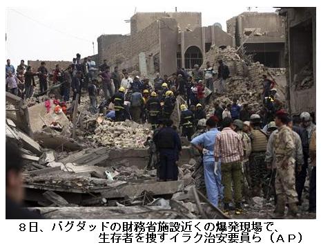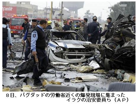 イラクの戦禍は納まっていたと思っていたが、今朝のニュースによると、大規模なテロがあったらしい。曰く、《イラク:爆弾テロ、127人死亡 ― バグダッド ―― 【カイロ和田浩明】イラクの首都バグダッドで8日朝、政府機関など中枢部を標的にしたとみられる連続5件の爆弾テロが発生し、AFP通信によると少なくとも127人が死亡、448人が負傷した。首都での大規模テロは8月と10月に発生したばかりで4カ月弱で3度目。来年に連邦議会選挙を控え治安悪化の懸念が強まる中、相次ぐ中枢部への攻撃でマリキ政権の威信が揺さぶられている。/内務省関係者によると、午前10時半ごろに内務省や労働省付近で車爆弾2発が相次いで爆発。続いて南部ドーラ地区の大学付近で自爆テロが起きた。さらに、西部マンスール地区の裁判所、中心部ショルジャ地区の市場でも車爆弾が爆発した。/8日午後時点で犯行声明は出ていない。過去2回の大規模テロでは、国際テロ組織アルカイダ系団体「イラク・イスラム国(ISI)」が犯行を認め、イラク政府は「旧政権党バース党関係者が関与した」と主張した。8月の事件では、わいろを受け取った当局者が実行犯に検問所を通過させたとの供述も出ており、治安当局への市民の信頼は低下している。来年予定される連邦議会選挙に向け、宗派・民族間対立の激化が懸念されている。(毎日新聞 2009年12月9日 東京朝刊 ―― 毎日jpよりコピー掲載)》