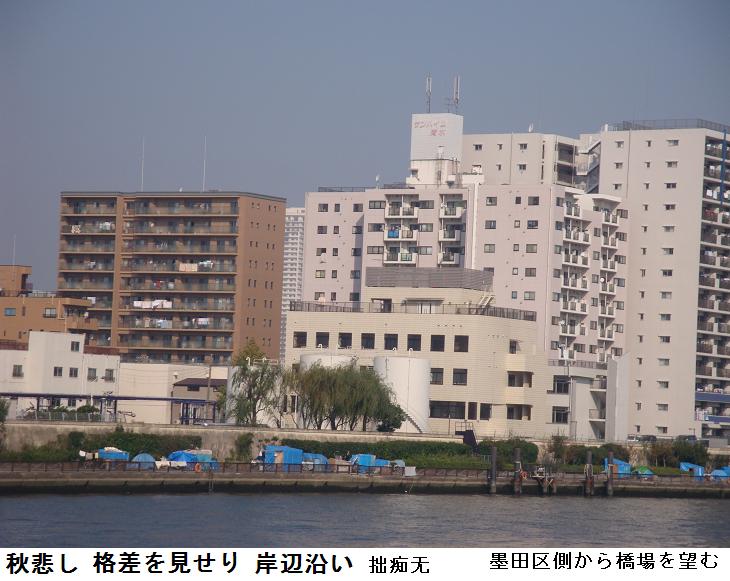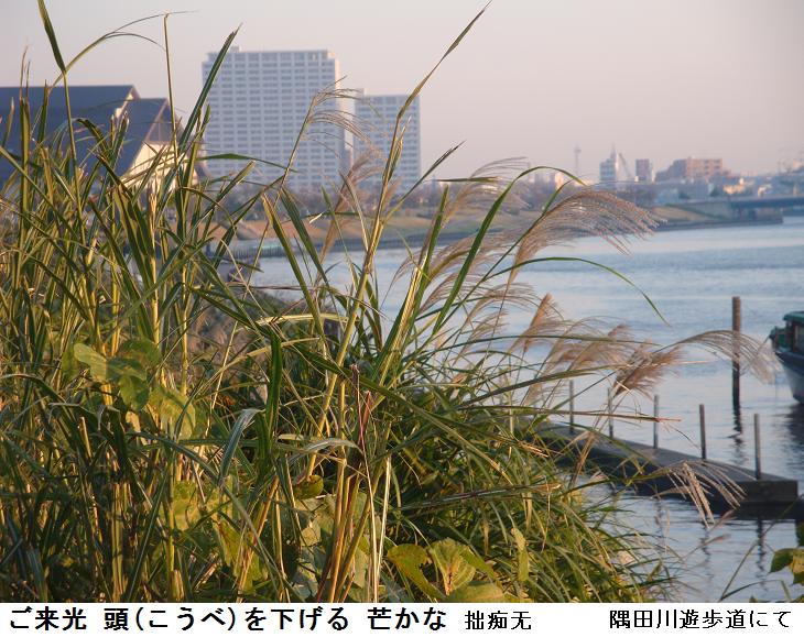 春の女は感傷に耽り、秋の男は悲傷に暮れるという。昨日は桜橋を渡り、遊歩道を通って明治通りへ。東白鬚公園を抜けて水神大橋を渡る。汐入公園からもうひとつの「さくら橋」を渡り、何時もの荒川区の遊歩道に出る。小春日和のポカポカ陽気に汗ばみながら、台東区の隅田川沿い遊歩道を南下して帰宅する。10723歩、6.9kmが昨日の記録。