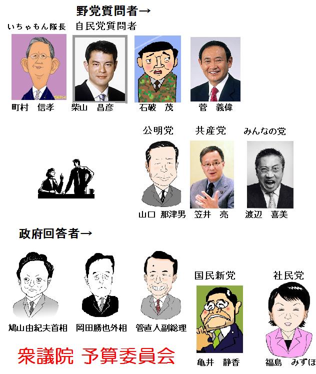 委員会室後方で拍手やヤジを送る委員以外の「声援要員」は、143人の新人議員を抱える民主党が自民党を圧倒。鳩山由紀夫首相の答弁が終わるたびに、委員会室には拍手がわき起こった。(以下略)――毎日j pより