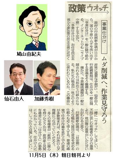 午後に質問に立ったのは、菅元総務相。/日本郵政社長に、小沢幹事長の盟友とされる斎藤元大蔵次官を起用した人事を批判した。/鳩山首相は「今回の斎藤人事。私どもの定義している役所によるあっせんではありません。官僚の天下り、渡りというものは、もう禁止しました」と反論した。/これに対し、菅元総務相は「私が不思議に思うのは、民主党の皆さんの中で、目立った反発がないということなんです」と述べ、この発言のあとに、「小沢が怖いんだよ」という声が聞かれた。etc.…
