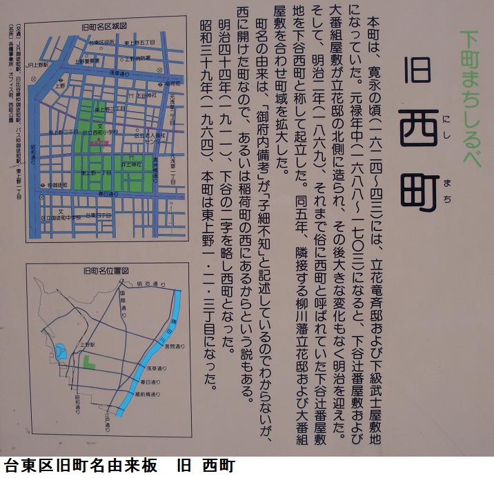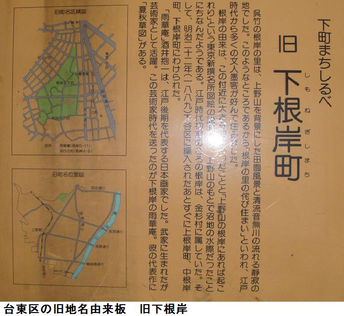 この辺りは飲み屋とホテルが立ち並び盛り場のど真ん中である。飲み屋街にそってひと回りすると信濃路という飲み屋の上に本殿があるらしい。曲がりくねった道路を回ると一の鳥居が立っていて、その袂に古びた由緒説明板があった。境内に入ると、階段がありそこを上った奥に本殿がある。元三島神社を出ると、創業350年という豆富料理の「笹の雪」の前から、再び言問通りに出ると、台東区の旧町名由来板がありこの辺りが上根岸町」であったことを知る。元来た道を引き返すのも能がないので、入谷方面でも見て帰ろうと路地に入ったが、途中方向が判らなくなり、あっちうろうろ、こっちうろうろ、どうやら国際通りの鷲神社の前に出ることが出来た。千束の五叉路から言問通りと小松橋通りの中間の通りを東進して帰宅した。11570歩、7.5㎞が記録されていた。