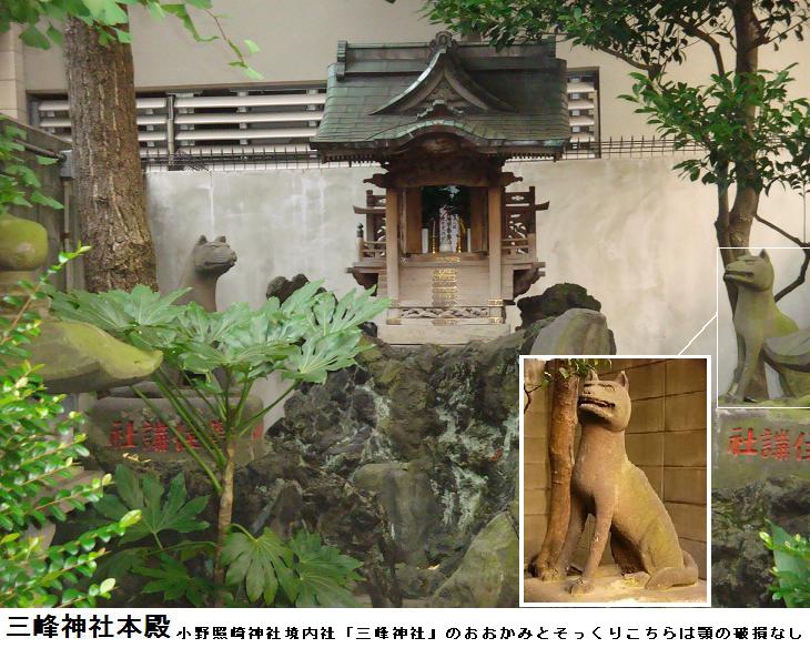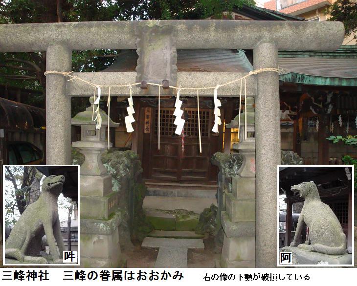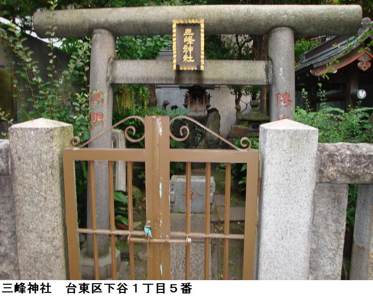 言問通りを越してはいるが、同じ下谷に2つ三峰神社があるのは何か謂れがあるのだろうか。こちらの眷属の狼さん先ほどの小野照崎神社の境内社の三峰神社の狼さんとそっくりである。阿の狼さんは先ほどの小野照崎神社のものは下顎が破損していたが、こちらのほうは完全である。案内板も何もないので、詳しいことは判らないが、いずれ秩父の三峰神社から勧請したものであろう。