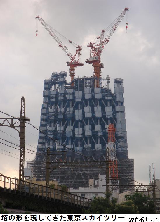 再び春日通に出ると厩橋を渡り、三つ目通りを北上する。北十間川かかる源森橋から見る東京スカイツリーは何となく塔の形になりだしたようである。言問通りに出て、言問橋を渡り帰宅した。9958歩、6.4kmの記録であった。