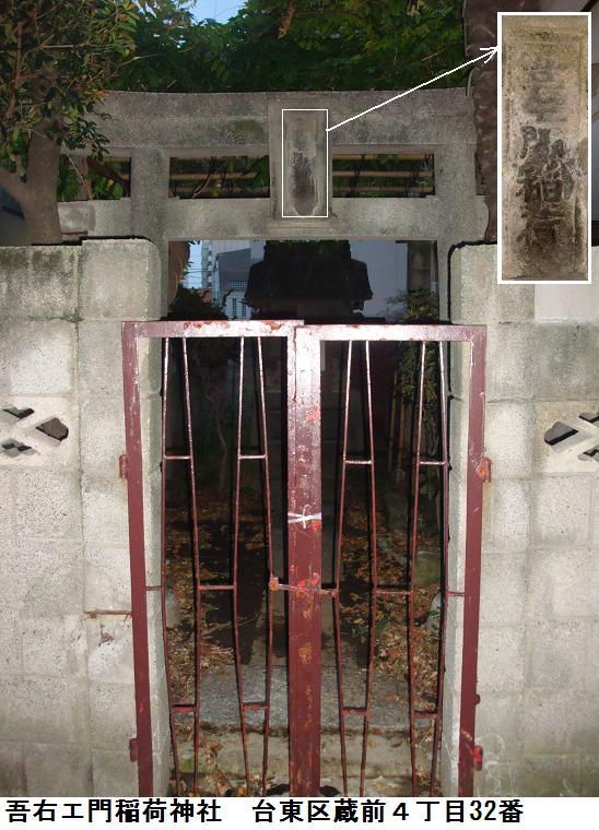 国際通りの次の路地を入った右側に「吾右エ門稲荷神社」というのがある。ブロック塀で仕切ってあり、同化すると民家の庭と見紛うほどの狭い敷地で門の内側に鳥居があり、その奥に拝殿がある。門は閉まっていたが、どうやらその状況をカメラに収めることが出来た。勿論由緒書きなど何処にもないので、どのような経緯のお稲荷さんかは判らない。