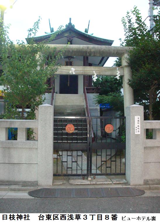 ここ西浅草の日枝神社も詳しいことは解らないが、おそらくは比叡山麓の日吉大社より勧請されたものであろうから、祭神は大山咋神(おほやまくひのかみ)であろう。大山咋神は山の神、水の神、地主神とされ、殖産新興、開拓の神であり、安産の神でもある。比叡山に天台宗の延暦寺ができてからは、天台宗および延暦寺の守護神ともされた。比叡山の王という意味で山王(さんのう)とも呼ばれる。天台宗が興した新道の一派で山王神道と言い、後に天海(1536? ~1643年)が山王一実神道と改めた。太田 道灌(1432~1486年)が江戸城の守護神として川越日吉社から大山咋神を勧請して日枝神社を建てた。江戸時代には徳川家の氏神とされ、明治以降は皇居の鎮守とされているらしい。神仏習合期には山王(さんのう。山王権現、日吉山王など)と称され、今日でも山王さんの愛称で親しまれている。猿を神使とする。