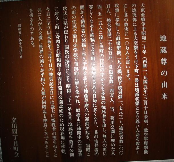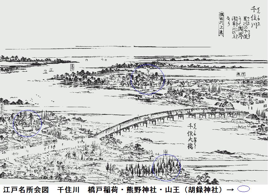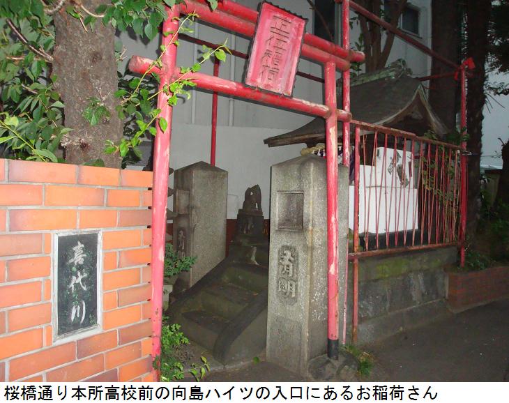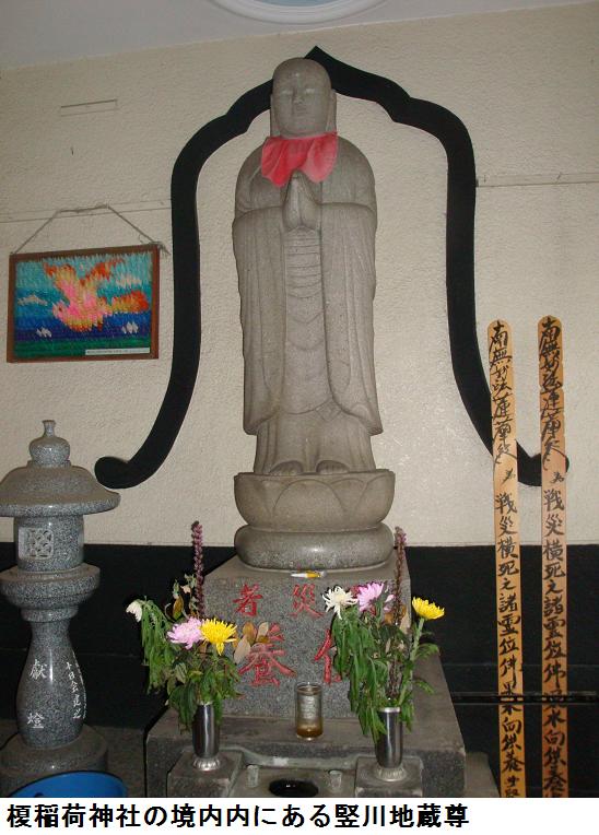 本日は榎稲荷神社を目当てに歩いたが、期せずして3つの稲荷と1つの地蔵尊に出会ったわけである。後は三之橋を渡り、三つ目通りを北上。言問橋東詰にでて、橋を渡って帰宅した。橋の上で小雨がパラつきだしだが、たいしたことはなかった。omron万歩計は10788歩、7.0㎞を記録していた。