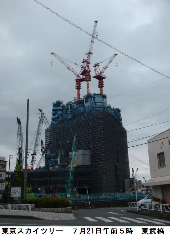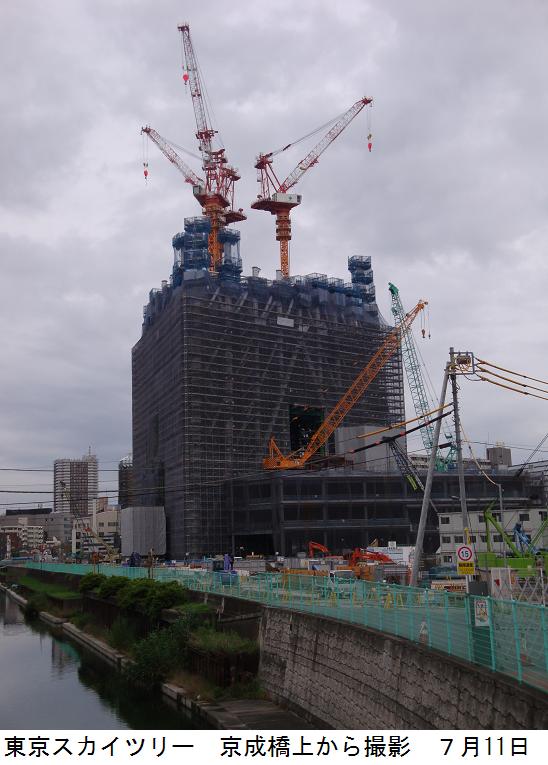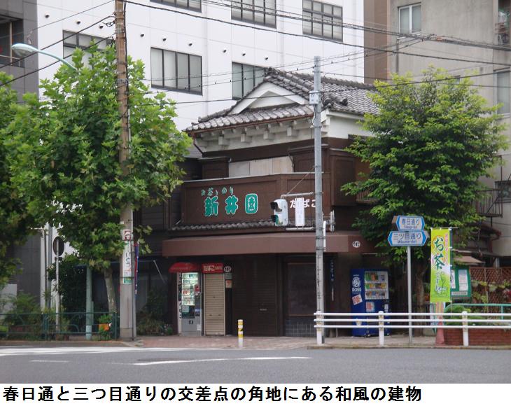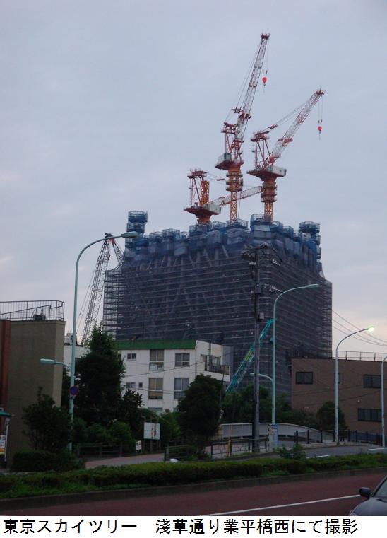 錦糸公園内にあるという千種稲荷を訪ねて昨日と同じコースを取った。桜橋通りから四つ目通りを南下、錦糸公園に来た。錦糸公園の内部をあちこちと探して歩くが、千種稲荷らしきものは見当たらない。公園内は総合体育館の建設中で、きっとこのために千種稲荷は廃社になったのだろうと、早合点して探すのを諦めて蔵前橋通り三つ目通りまで西に進む。三つ目通りを北上し、春日通りと交差する角地に和風の御茶屋がある。一応名前の知られた通りの角地という所は大抵大きな店舗が買い占めていてビルになっているのが普通であるが、こうした風景は珍しい。源森橋まで来ると東京スカイツリーが眼に入ったので、デジカメに収めた。今日の徘徊は11007歩、7.1㎞となっていた。