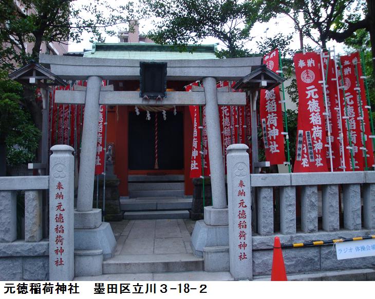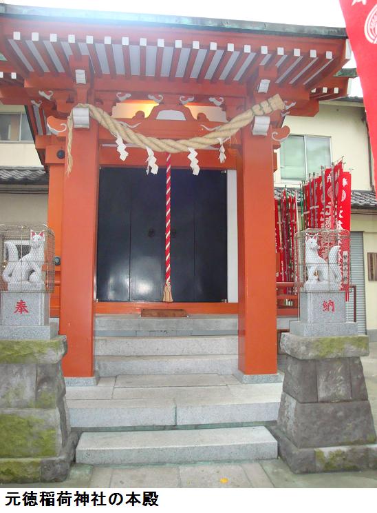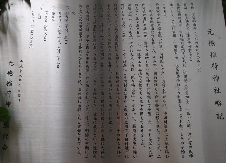 元徳稲荷については、写真の「神社略記」を超える詳細記事は今のところ見当たらず。