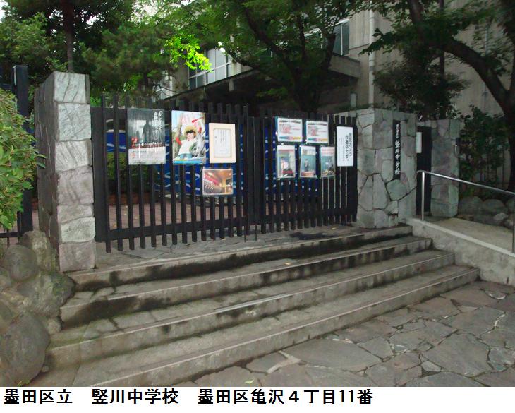 言問橋を渡って、東武業平橋駅前を通り、大横川に沿う東側の道を北斎通りまで南下する。北斎通りに来た頃、空から冷たいものが落ち始めたが、まあたいしたことはあるまいと、北斎通りを西に長崎橋を渡って、2つ目の信号を左折すると其処は墨田区立竪川小学校。校門の南角に『山岡鉄舟旧居跡』の史跡説明板がある。曰く「江戸末期の幕臣(将軍直属の家来)で剣術家、維新後に無刀流の創始者ともなり、侍従も勤めた山岡鉄舟の生家小野家が竪川中学校の正門あたりにありました。鉄舟は天保7 (1836) 年、御蔵奉行だった旗本小野朝右衞門高福(たかとみ)の五男として生まれ哲太郎と名付けられました。安政4 (1857) 年頃、槍術で知られる旗本山岡静山の妹婿となり山岡高歩(たかゆき)、号は鉄舟(本名の他につける名)を名乗りました。鉄舟の義兄ともなった槍の名手精一郎は旗本高橋家に入婿し、後に泥舟と号するようになります。勝海舟も含めてこの三人は《幕末の三舟》として知られています。慶応4 (1868) 年、江戸城総攻撃に先立ち鉄舟は西郷隆盛と接触し、勝海舟と協力して江戸城無血開城への道を開きました。明治維新後、静岡県や茨城県などで参事や県令(知事)となり、明治4 (1871) 年より明治天皇の侍従として厚い信頼を得ましたが、同21 (1888) 年53歳で死去し、台東区谷中の全生庵に葬られました。鉄舟は書家一楽斎としても有名ですが、区内木母地の境内にある《三遊塚》の碑文は鉄舟(表)、泥舟(裏)の筆になります。平成19年11月 墨田区教育委員会」
